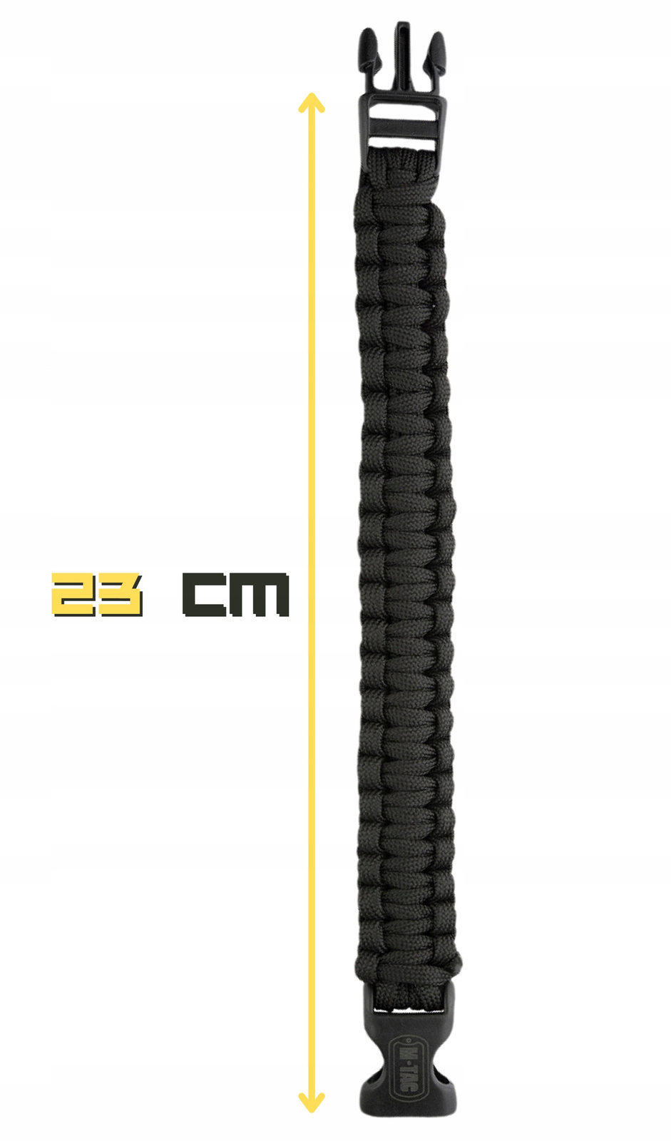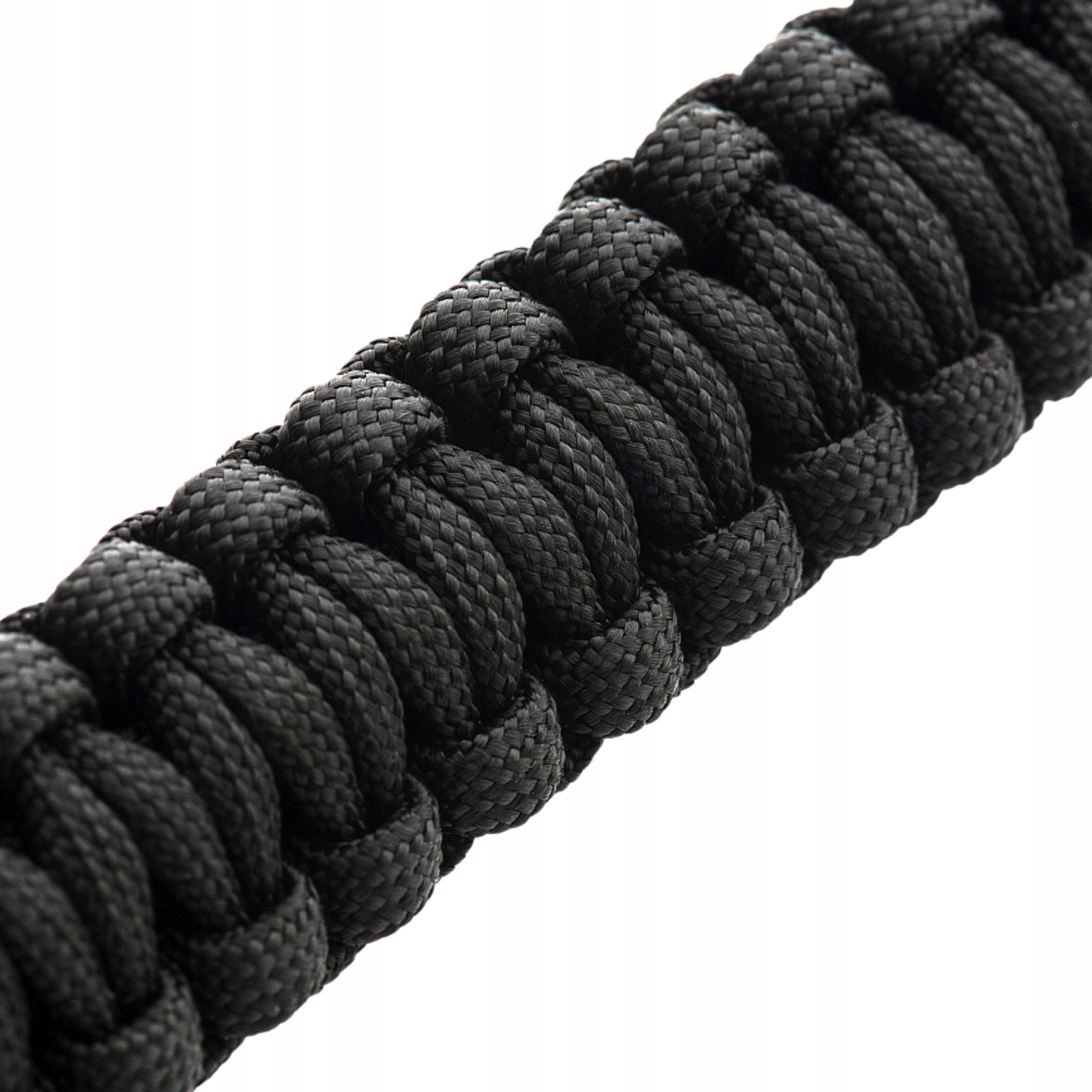 Bransoletka survivalowa firmy M-TAC®, która w rzeczywistości jest zapasem zaplecionej linki spadochronowej. Przydatny gadżet i jednocześnie oryginalna, męska biżuteria. Po rozwinięciu otrzymujemy około 3 m mocnej i wytrzymałej linki. Dzięki zastosowaniu siedmiu nylonowych rdzeni wewnątrz, linka jest w stanie wytrzymać nawet do 200 kg obciążenia.
