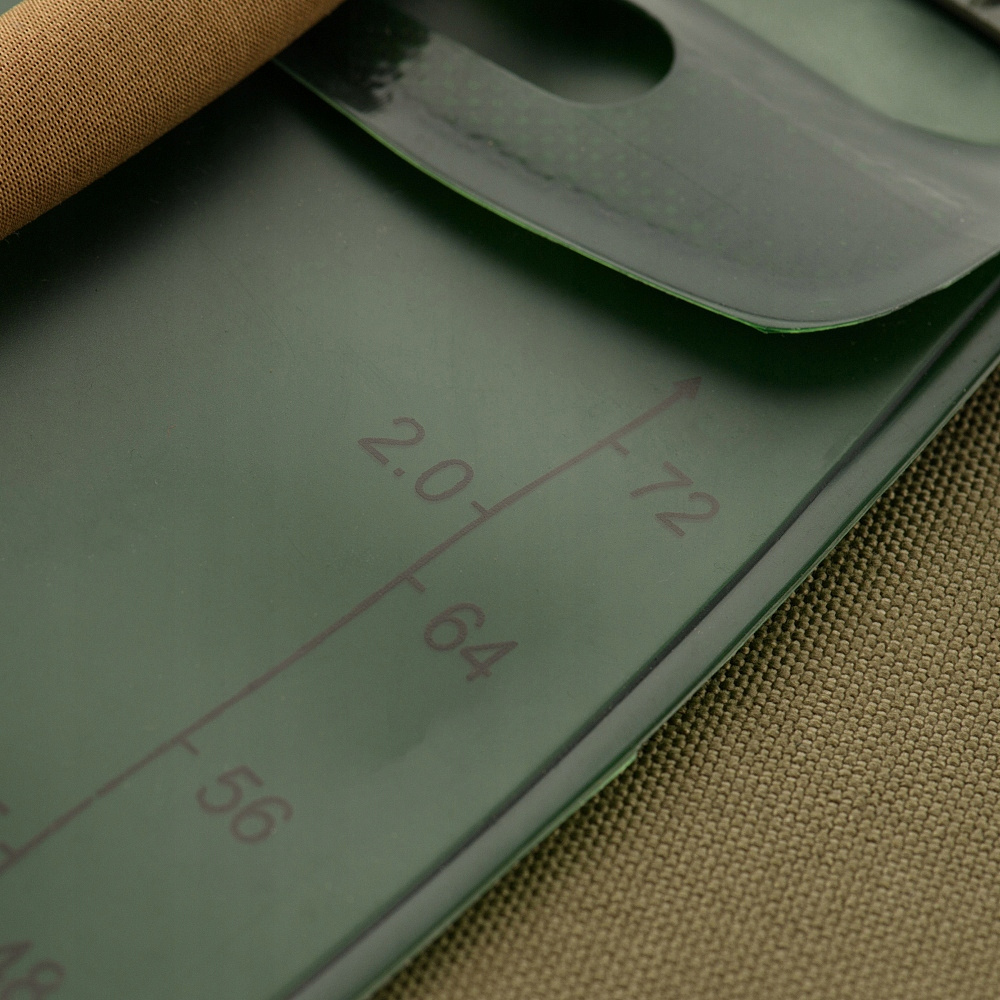Bukłak wykonany został z wytrzymałego materiału PEVA, który charakteryzuje się wysoką odpornością na intensywną eksploatację, zgniatanie oraz przetarcia. Materiał ten nie pochłania smaku oraz zapachu dzięki czemu Twoje napoje pozostaną świeże niezależnie od warunków.