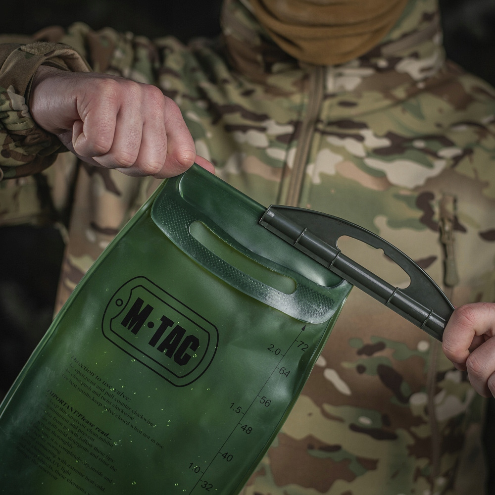 Lekki i wytrzymały bukłak na wodę M-TAC® o pojemności 2L. Idealnie sprawdzi się podczas dłuższych podróży rowerem, pieszej wędrówki lub biegu. Zajmuje mało miejsca, dzięki czemu można go wygodnie przenosić w plecaku.