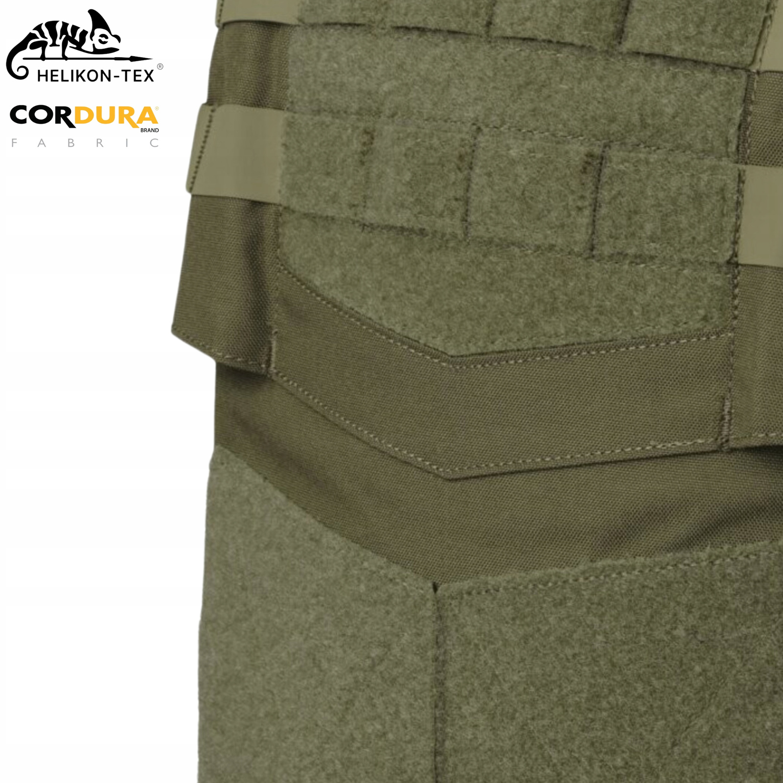 Kamizelka wykonana jest z ultra wytrzymałej na rozdarcia CORDURY® 500D, która odporna jest na działanie warunków atmosferycznych, rdzy, pleśni, czy promieniowania UV. Materiał wycięty został w technice laserowej (Laser Cut) oraz spełnia normy NIR przez co "nie świeci się w noktowizji".