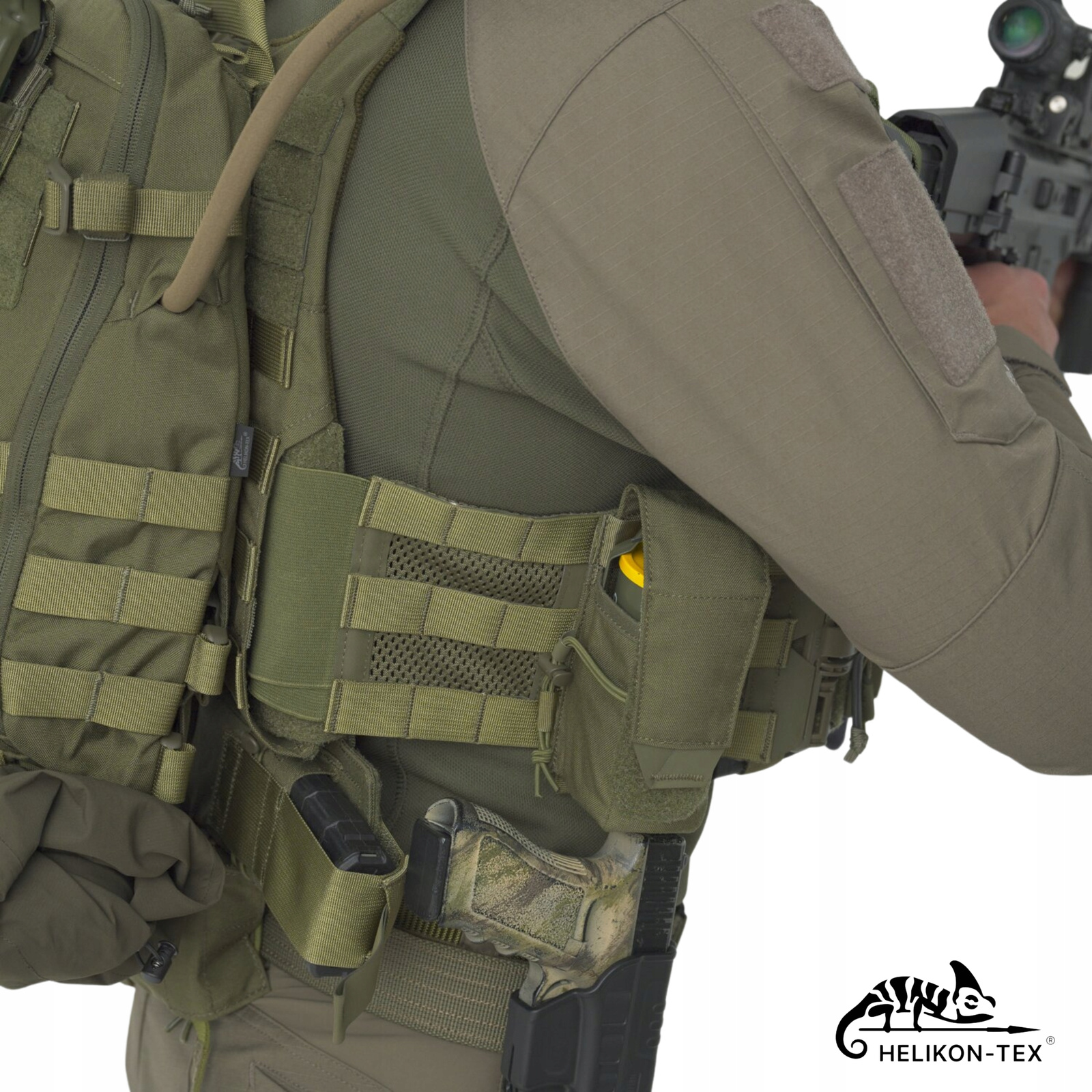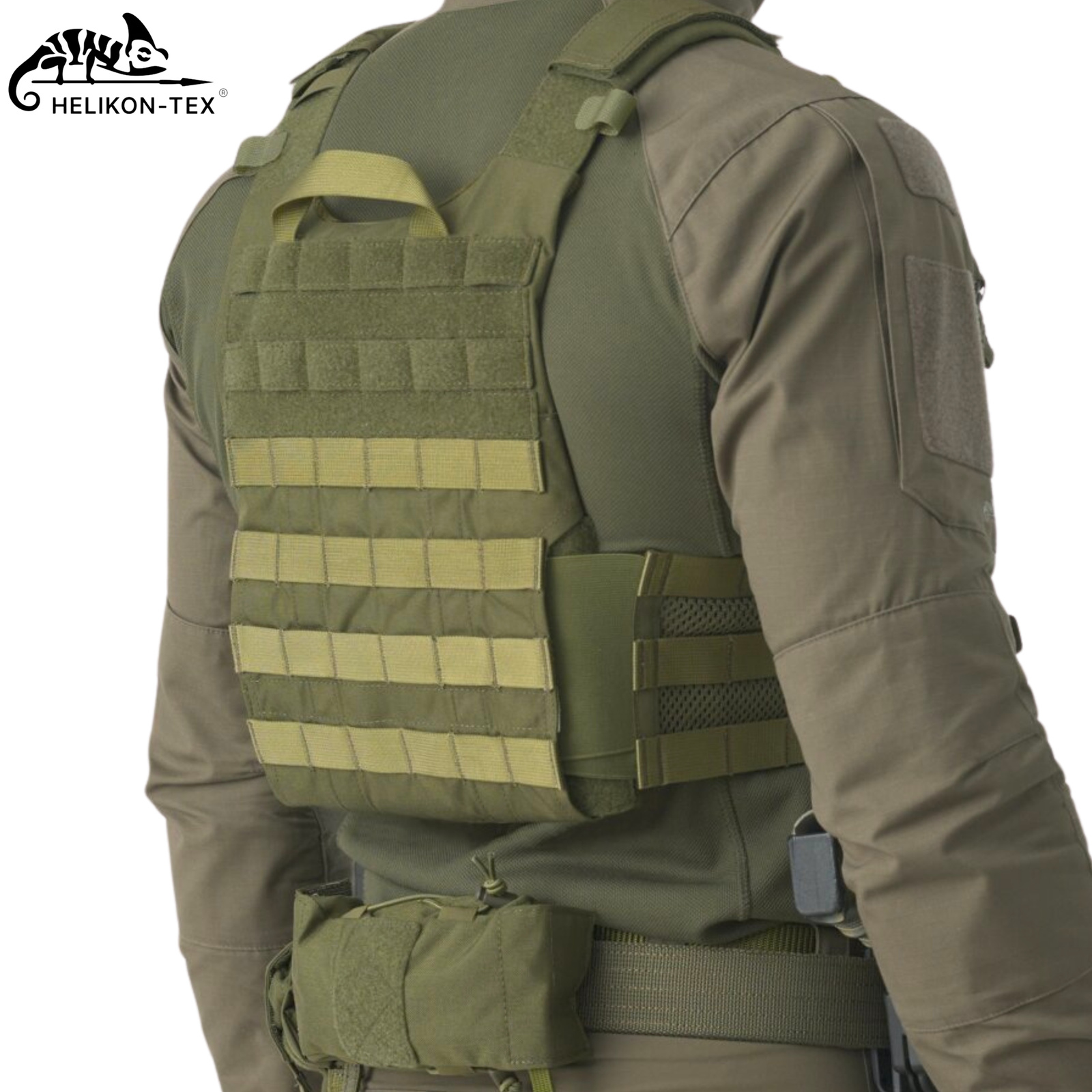 Kamizelka taktyczna Guardian® Plate Carrier zaprojektowana przez Helikon-Tex® w wariancie Olive Green. Kamizelka została opracowana ze szczególnym przeznaczaniem dla armii, policji i innych służb mundurowych.