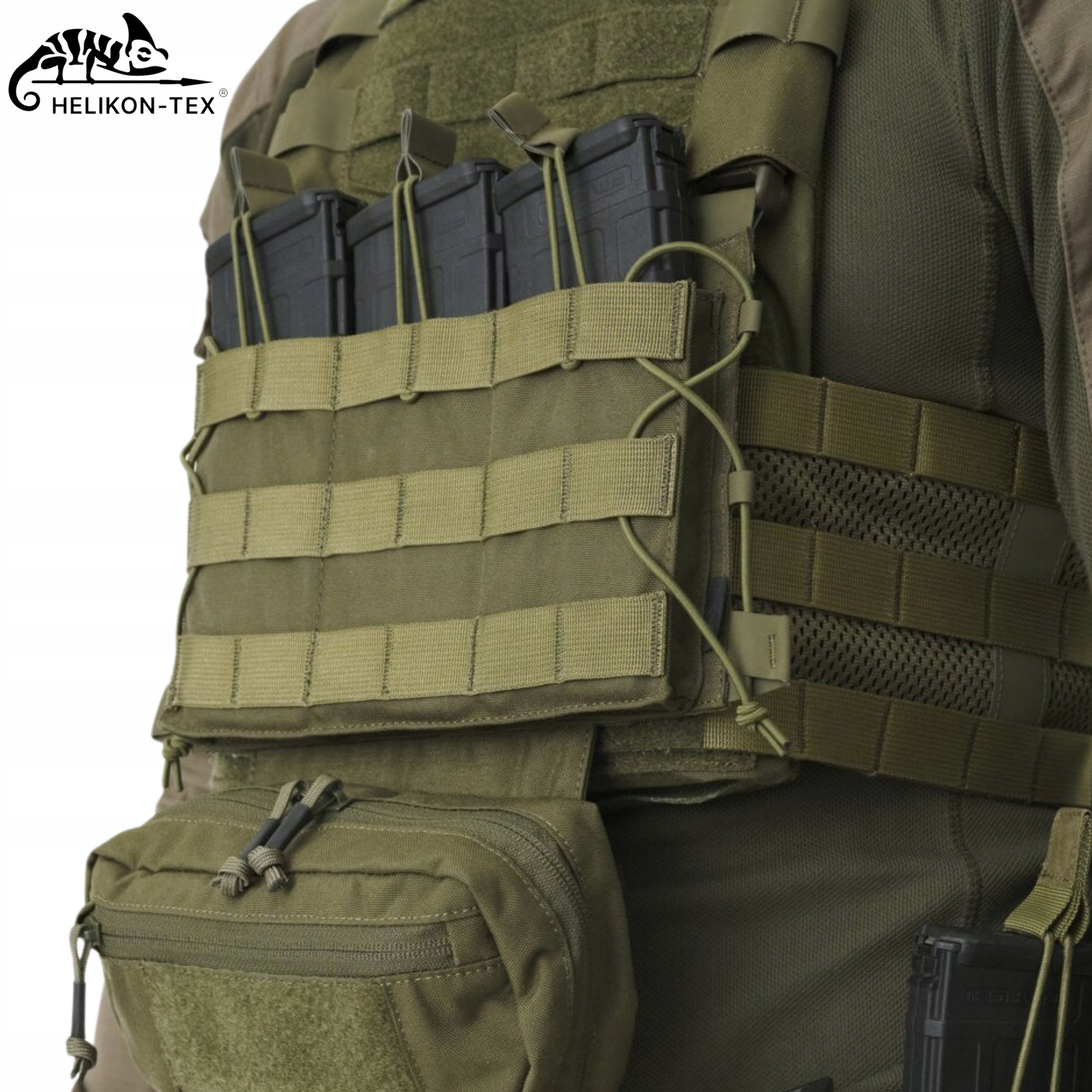 Kamizelka posiada moduł z uniwersalną ładownicą na trzy magazynki karabinowe AK/AR. Pullery z linki Shock-Cord zapobiegają wysunięciu się magazynka, jednocześnie zapewniając do niego swobodny dostęp. Na froncie naszyte zostały taśmy w systemie MOLLE/PALS a na bokach znajdują się linki Shock-Cord umożliwiające doczepienie dodatkowych akcesoriów.