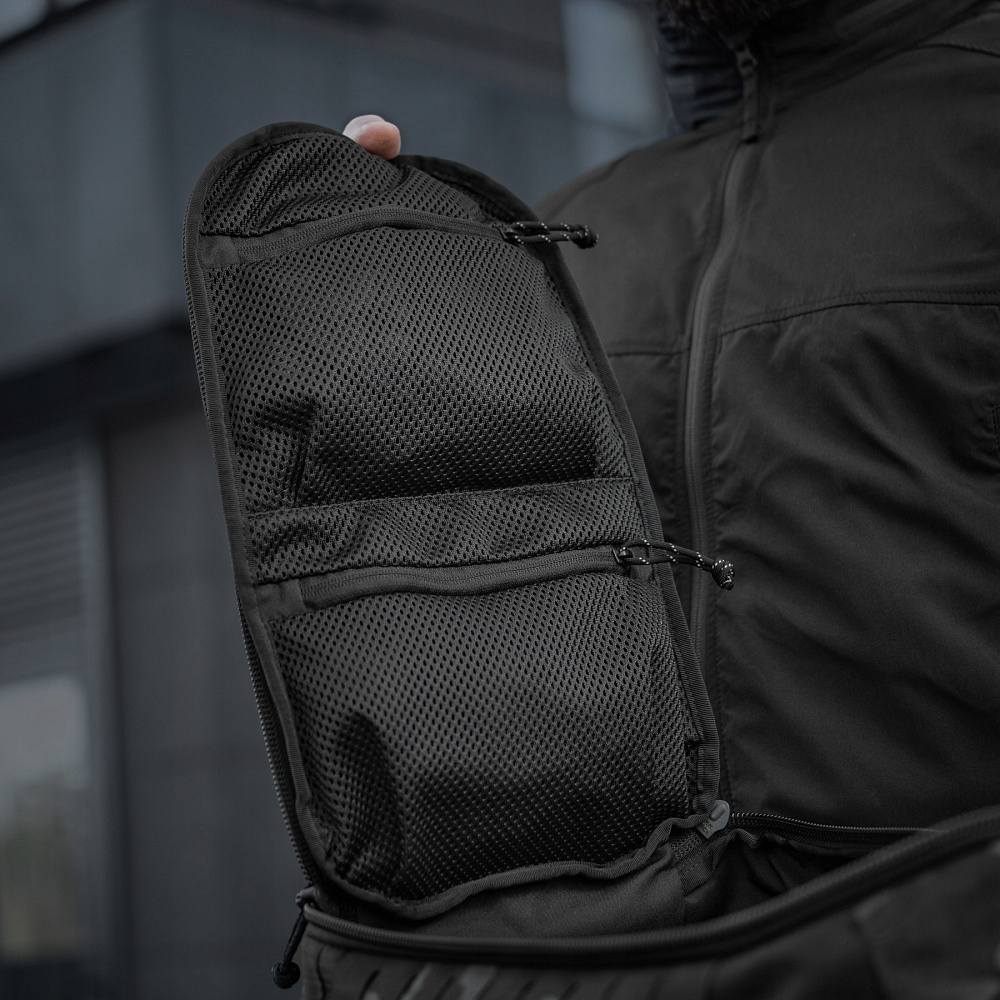 Plecak posiada wymienną wkładkę usztywniającą plecy, co pozwala użytkownikowi zadecydować, czy potrzebuje maksymalnego wsparcia pod większym obciążeniem, czy też preferuje lżejszą i bardziej elastyczną konstrukcję na potrzeby dynamicznych działań.