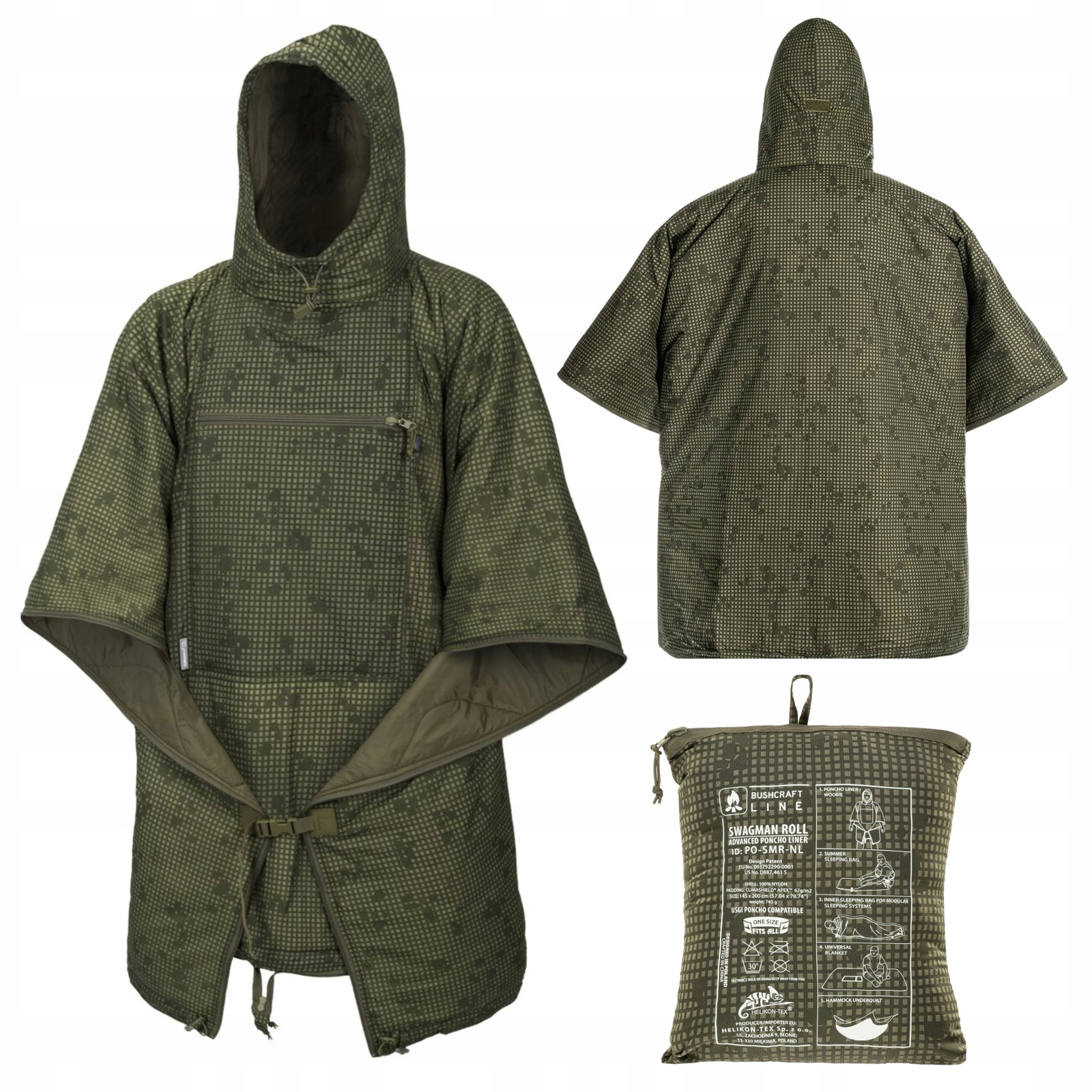 Lekkie, multi-funkcjonalne ponczo przeciwdeszczowe z ocieplanym kapturem. Oprócz klasycznego przeznaczenia ponczo może posłużyć jako awaryjna kurtka, śpiwór lub wkładka do śpiwora, koc, a także jako podpinka pod hamak.