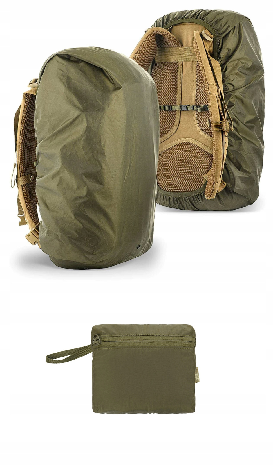 Elastyczna taśma dookoła pokrowca oraz regulowany pasek z klamrą typu FASTEX zapewnia dobre przyleganie pokrowca do plecaka. Po złożeniu pokrowiec jest naprawdę niewielki poprzez możliwość zwinięcia go w małą "poduszkę" za sprawą przyszytej kieszeni z zamkiem błyskawicznym.