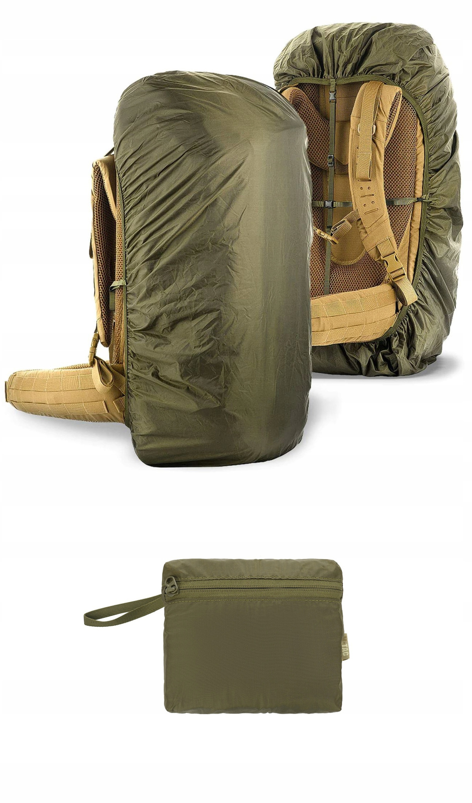 Elastyczna taśma dookoła pokrowca oraz regulowane paski z klamrami typu FASTEX zapewniają dobre przyleganie pokrowca do plecaka. Po złożeniu pokrowiec jest naprawdę niewielki poprzez możliwość zwinięcia go w małą "poduszkę" za sprawą przyszytej kieszeni z zamkiem błyskawicznym.